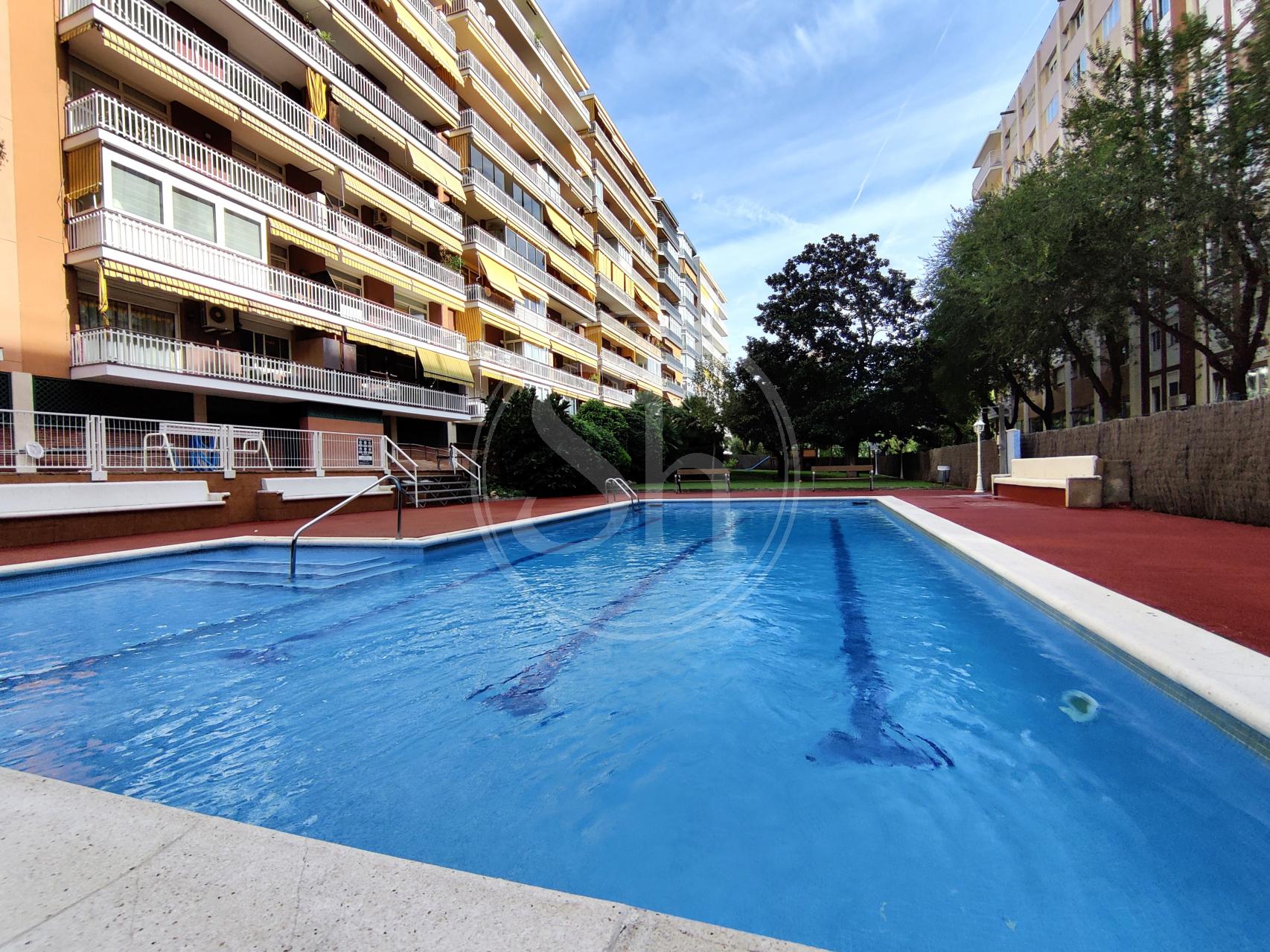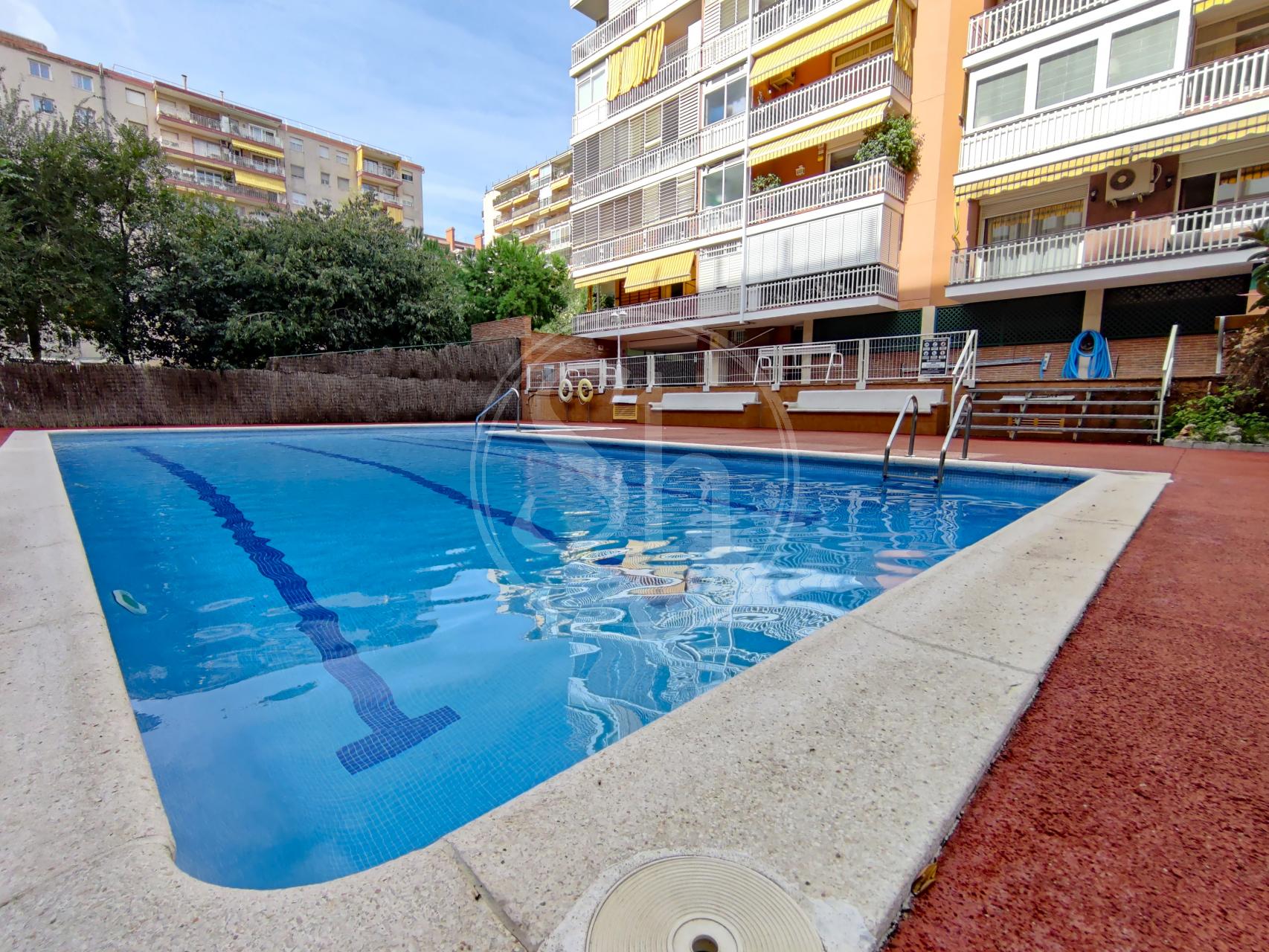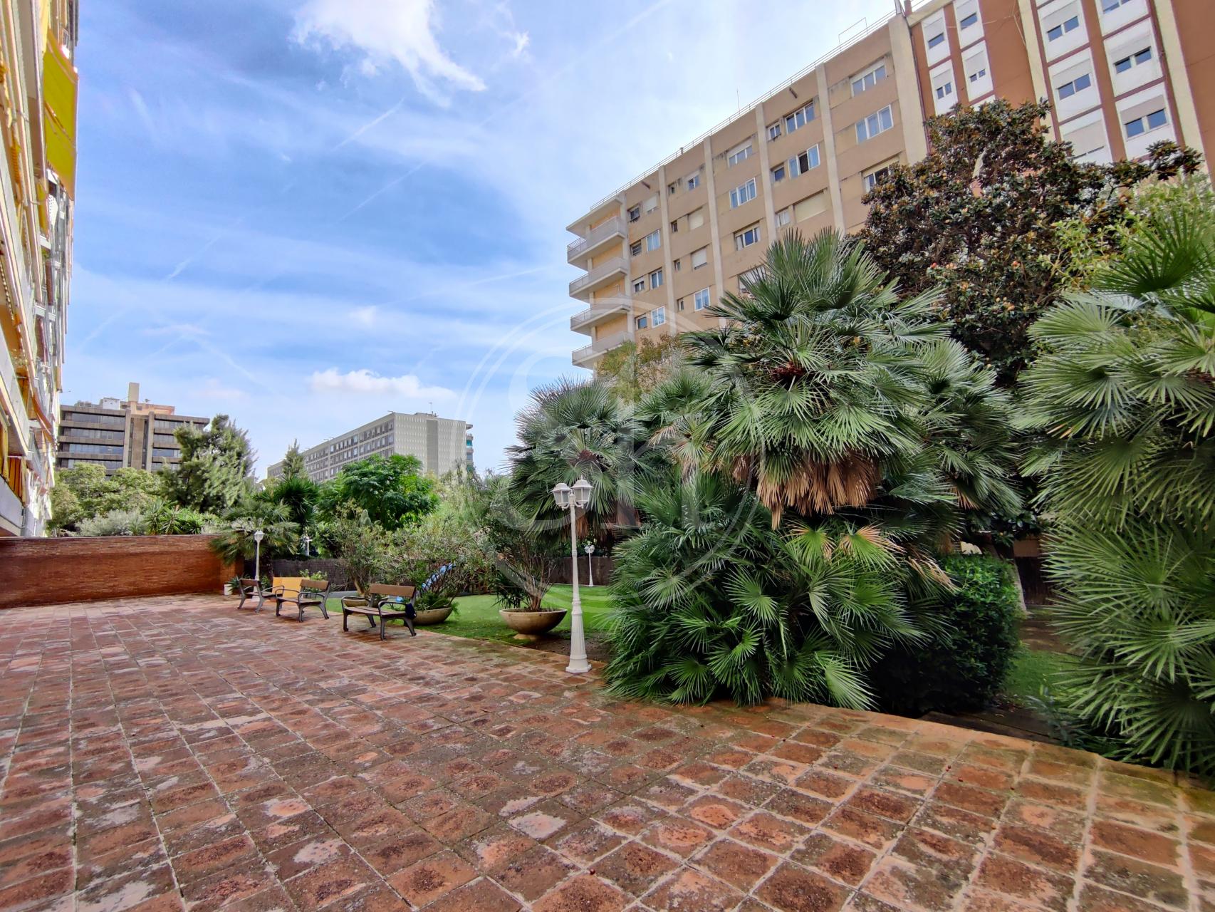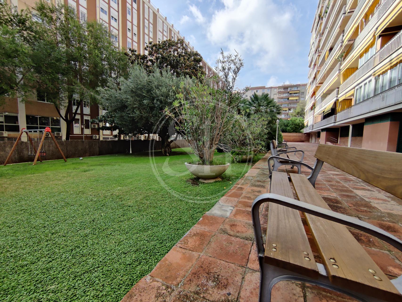 Pis de lloguer a la Pedralbes (Les Corts) de Barcelona. Pis moblat de 122m² construïts, equipat amb aire condicionat fred/calor, calefacció per radiadors de gas i parquet natural. Al pis hi trobem un saló-menjador, amb sortida a balcó i vistes a zona enjardinada i piscina. La cuina és independent equipada amb nevera, microones i cuina de gas. La cuina té accés a galeria, on hi trobem la rentadora. L´immoble també disposa de dues habitacions dobles i una altra habitació individual. Addicionalment trobem dues cambres de bany completes, una independent amb banyera i una altra en suite amb plat de dutxa. També trobem un espai addicional, que es pot fer servir com a vestidor o estudi. Finca amb ascensor i conserge a zona familiar i de serveis, amb bona comunicació amb transport públic. Metre Maria Cristina (L3). Autobús 63, V5 i 78. Electrodomèstics de cortesia.