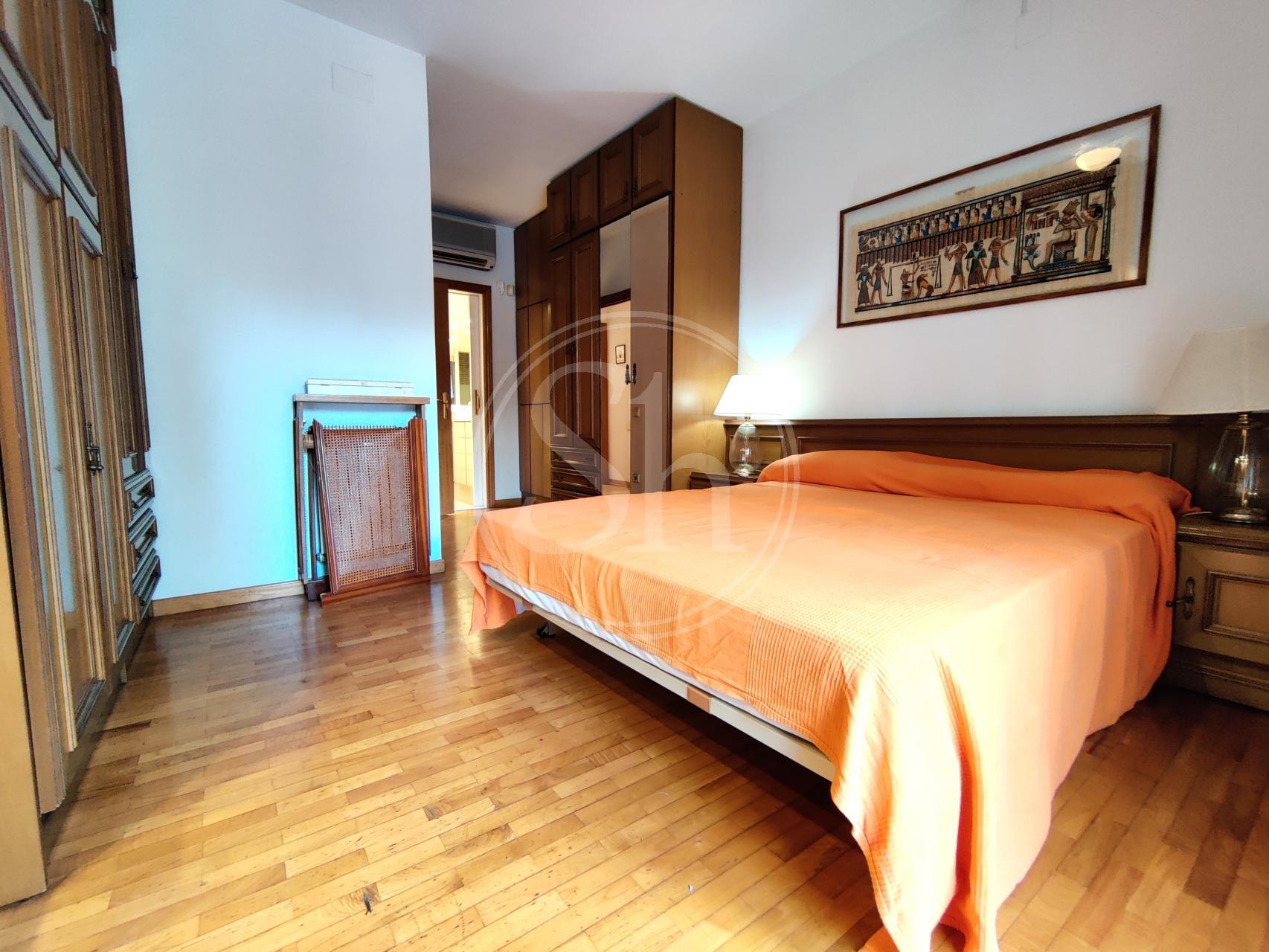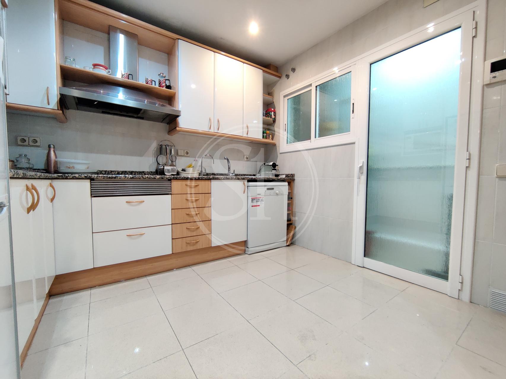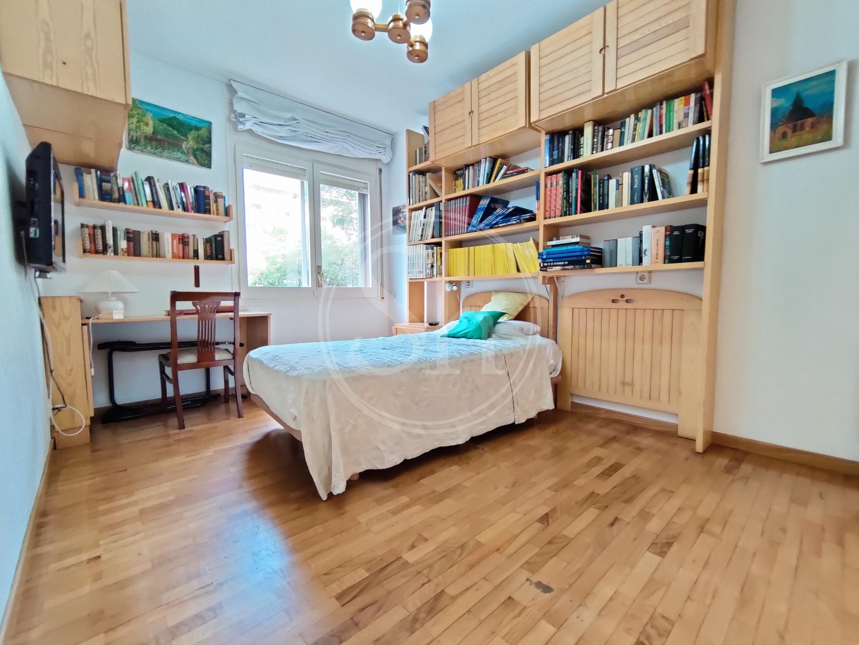Piso en alquiler en la Pedralbes (Les Corts) de Barcelona. Piso amueblado de 122m² construidos, equipado con aire acondicionado frío/calor, calefacción por radiadores de gas y parquet natural. En el piso encontramos un salón-comedor, con salida a balcón y vistas a zona ajardinada y piscina. La cocina es independiente equipada con nevera, microondas y cocina de gas. La cocina tiene acceso a galería, donde encontramos la lavadora. El inmueble también dispone de dos habitaciones dobles y otra habitación individual. Adicionalmente encontramos dos cuartos de baño completos, uno independiente con bañera y otro en suite con plato de ducha. También encontramos un espacio adicional, que se puede usar a modo de vestidor o estudio. Finca con ascensor y conserje en zona familiar y de servicios, con buena comunicación con transporte público. Metro Maria Cristina (L3). Autobús 63, V5 y 78. Electrodomésticos de cortesía.