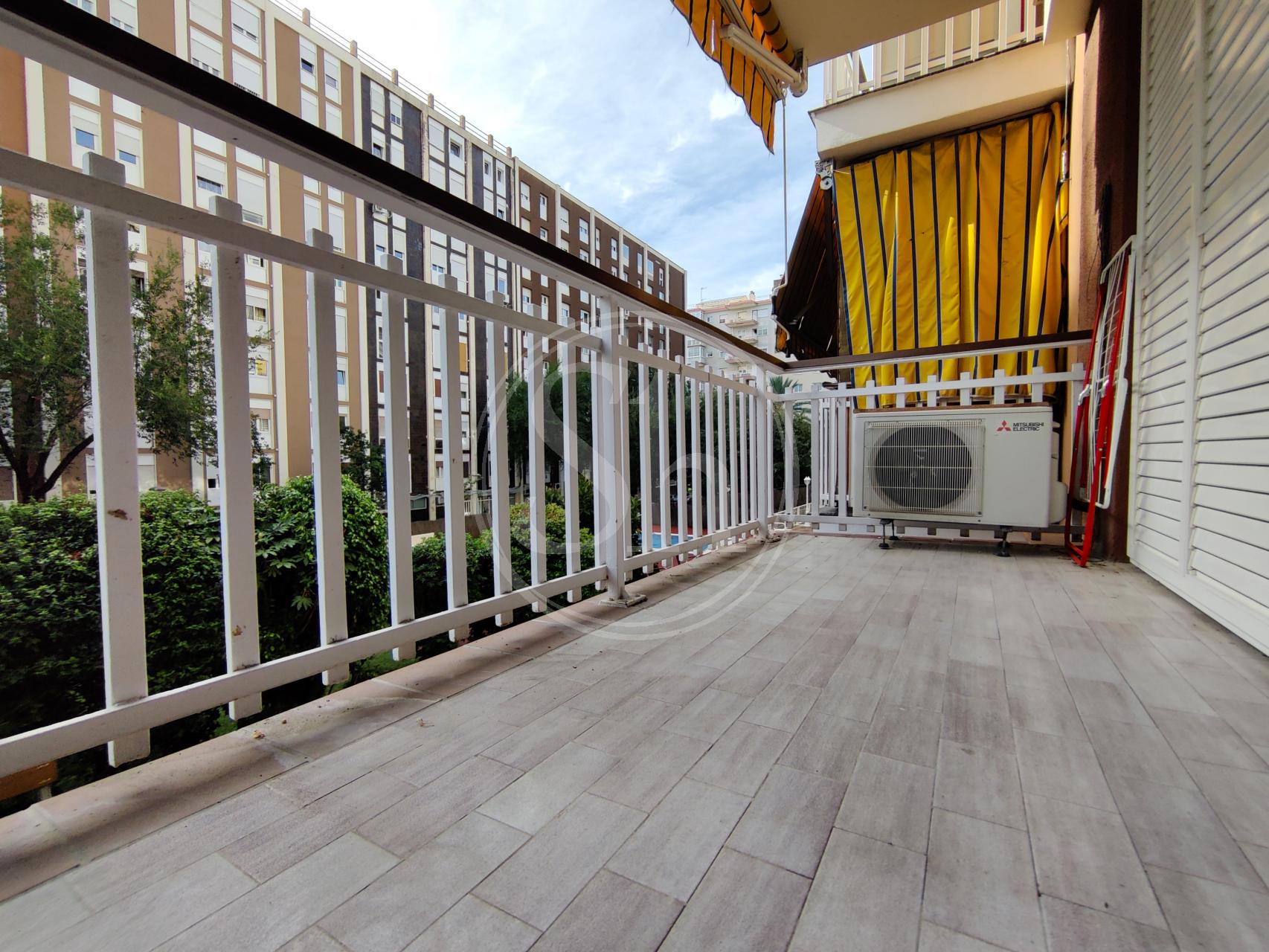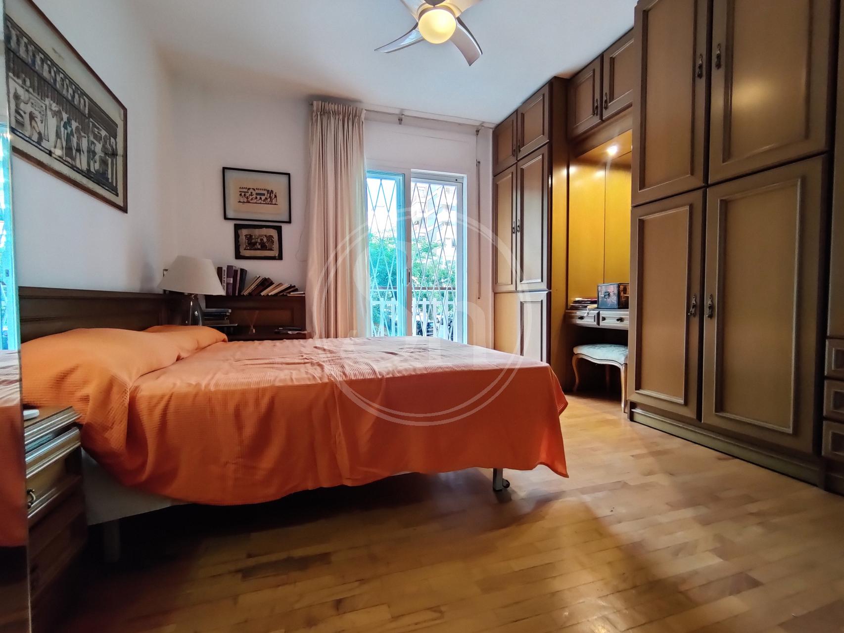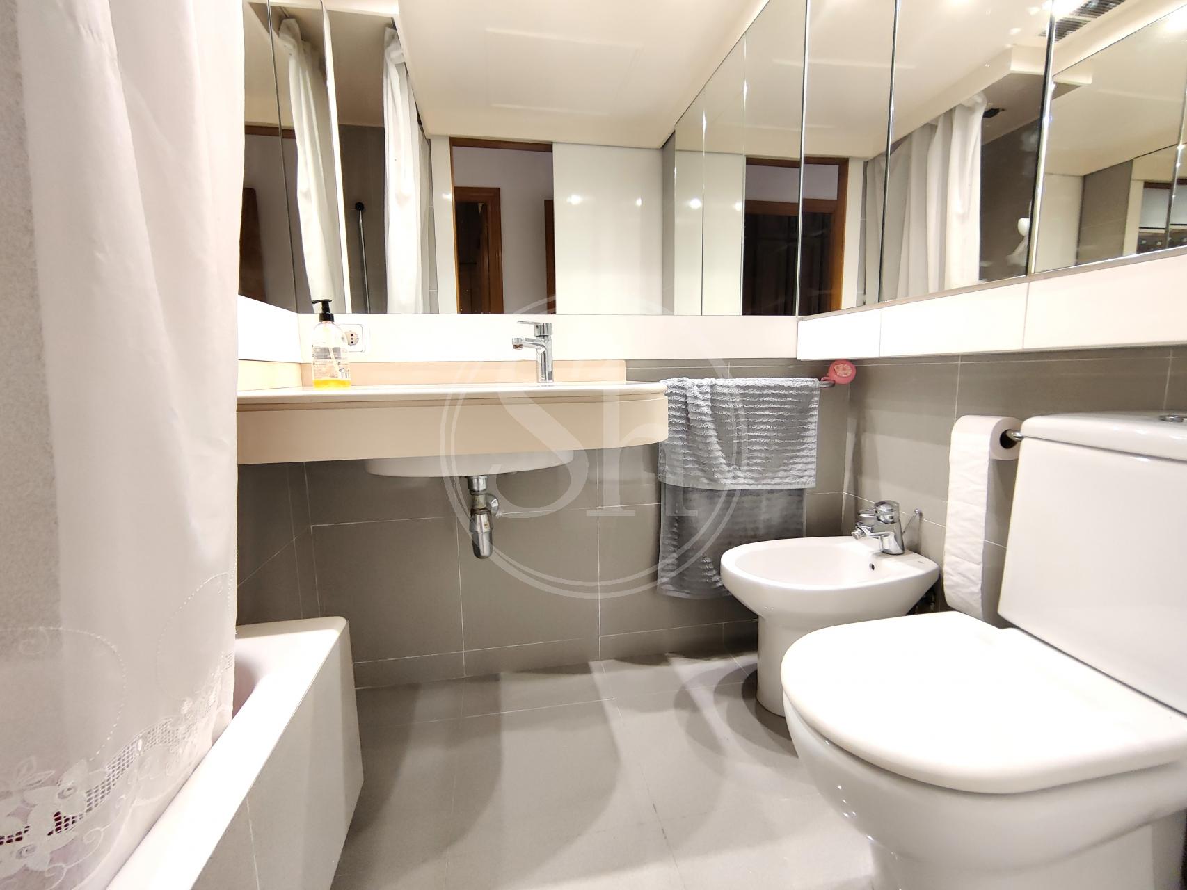 Piso en alquiler en la Pedralbes (Les Corts) de Barcelona. Piso amueblado de 122m² construidos, equipado con aire acondicionado frío/calor, calefacción por radiadores de gas y parquet natural. En el piso encontramos un salón-comedor, con salida a balcón y vistas a zona ajardinada y piscina. La cocina es independiente equipada con nevera, microondas y cocina de gas. La cocina tiene acceso a galería, donde encontramos la lavadora. El inmueble también dispone de dos habitaciones dobles y otra habitación individual. Adicionalmente encontramos dos cuartos de baño completos, uno independiente con bañera y otro en suite con plato de ducha. También encontramos un espacio adicional, que se puede usar a modo de vestidor o estudio. Finca con ascensor y conserje en zona familiar y de servicios, con buena comunicación con transporte público. Metro Maria Cristina (L3). Autobús 63, V5 y 78. Electrodomésticos de cortesía.