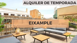 Pis de 95 m2 de lloguer temporal al districte de l'Eixample de Barcelona. L'habitatge es troba totalment moblat i equipat amb mobiliari d'última generació. L´immoble consta d´una cuina tipus office amb electrodomèstics, un saló-menjador amb sofà, TV, i una taula amb cadires que comunica amb finestrals al´exterior, també disposa de 2 habitacions amb llit doble i 2 banys amb dutxa. El pis està dotat amb aire condicionat, calefacció, connexió a internet, rentavaixelles, rentadora i assecadora.