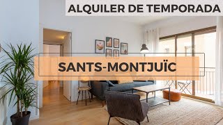Maravilloso piso de alquiler temporal en el barrio de Poblesec, muy cerca de la famosa Plaza España. El apartamento se encuentra muy cerca de Montjuic, teniendo así cerca la Fuente Mágica y todos los jardines y museos que lo componen.